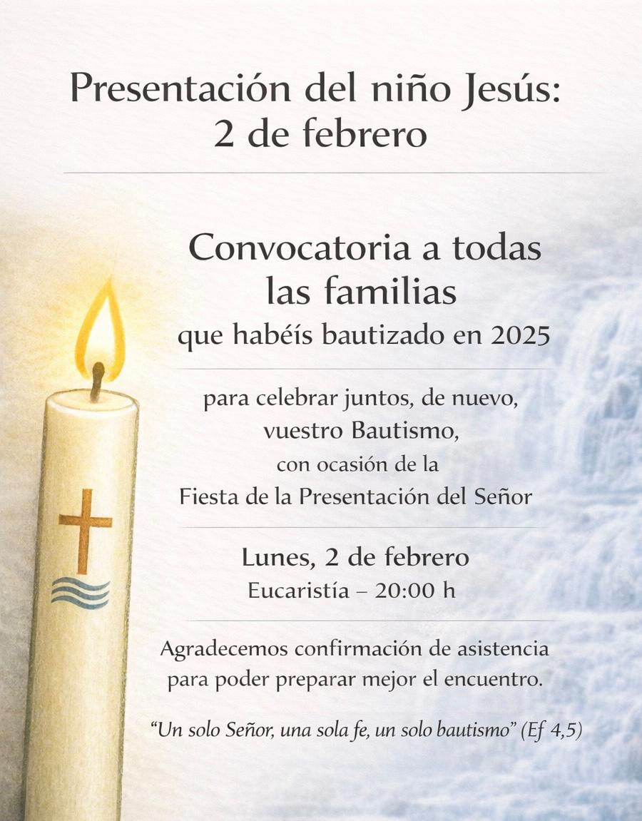Se convoca a todos los bautizados en 2025 y lo que va de 2026, para celebrar ese bautismo todos juntos.